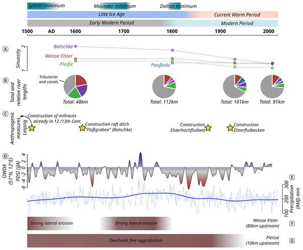 Spatiotemporal dynamics of river channel patterns during the last 400 years south of Leipzig, Germany